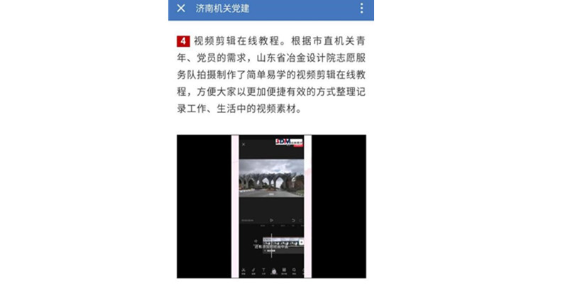 4月1日,為貫徹市直機關(guān)青年志愿“區(qū)塊鏈”項目部署,公司團委積極組建青年志愿服務(wù)隊,結(jié)合市直機關(guān)廣大黨員、青年掌握簡易視頻剪輯的需要,第三團支部、第六團支部團員青年迅速行動制作了電腦端視頻剪輯教程和手機端視頻剪輯教程,該志愿服務(wù)項目得到了市直機關(guān)團工委充分認可,并在濟南機關(guān)黨建平臺予以推廣。