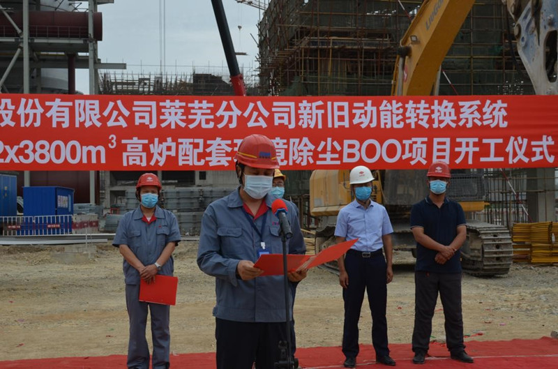2020年6月16日,公司總承包的山鋼股份萊蕪分公司新舊動能轉(zhuǎn)換升級改造2*3800m3高爐配套環(huán)境除塵BOO項目舉行了開工儀式。萊蕪分公司新舊動能轉(zhuǎn)換指揮部田慶元經(jīng)理、萊蕪三控冶金建設(shè)監(jiān)理事務(wù)所沈桂聯(lián)經(jīng)理、我公司劉洪亮副總經(jīng)理及其他相關(guān)單位領(lǐng)導(dǎo)出席了開工儀式,劉洪亮副總在開工儀式上講話,九點五十八分田慶元經(jīng)理宣布項目開工。