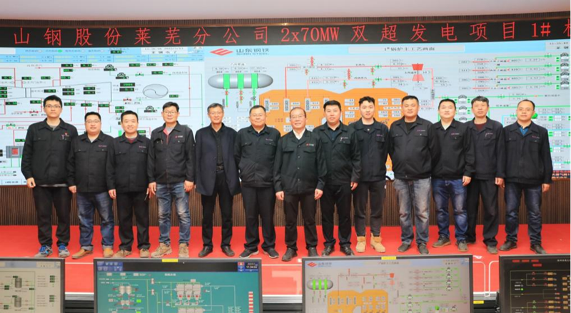 該項目2021年12月12日,1號鍋爐正式點火烘爐。2022年1月6日,汽輪機蒸汽管道吹掃合格。2月28日,汽機發(fā)電機組一次沖轉(zhuǎn)成功。3月10日,系統(tǒng)完成反送電,正式具備了并網(wǎng)發(fā)電條件。3月13日并網(wǎng)發(fā)電成功。這是公司首次總承包建設、也是山鋼集團首套燃煤氣雙超發(fā)電系統(tǒng)。