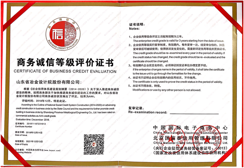 本次信用評級經(jīng)過資料申報、行業(yè)調(diào)查、周邊訪問等一系列社會評估工作程序,經(jīng)國家商務(wù)部中國國際電子商務(wù)中心、北京國富泰信用管理有限公司對公司的信用記錄、管理能力、經(jīng)營水平、社會形象、財務(wù)狀況、顧客滿意度、發(fā)展前景等綜合實力進行嚴格、全面的分析和審核,最終公司獲得一致通過,并被評為商務(wù)誠信等級AAA級信用企業(yè)。這是對企業(yè)信用的最高等級評價,標志著公司強大的企業(yè)綜合實力和良好企業(yè)信用度獲得了高度認可。