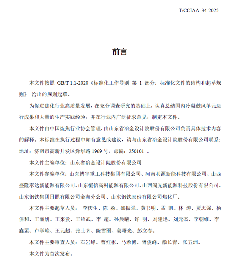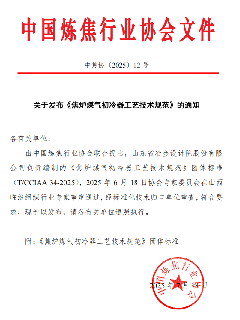 7月18日,由山冶設(shè)計(jì)主編的《焦?fàn)t煤氣初冷器工藝技術(shù)規(guī)范》T/CCIAA 34-2025(簡稱《規(guī)范》)正式發(fā)布并實(shí)施?!兑?guī)范》對焦化煤氣凈化初冷器的工藝流程、操作參數(shù)以及質(zhì)量指標(biāo)作出了詳細(xì)規(guī)定,同時統(tǒng)一了初冷器的設(shè)計(jì)與操作標(biāo)準(zhǔn),保障了煤氣冷卻過程的高效性與安全性。《規(guī)范》的發(fā)布與實(shí)施,可指導(dǎo)焦化企業(yè)在生產(chǎn)過程中有效把控初冷器的日常操作,為后續(xù)煤氣凈化及深加工的穩(wěn)定運(yùn)行創(chuàng)造有利條件。這是繼2024年7月1日正式實(shí)施、山冶設(shè)計(jì)主編的《焦?fàn)t煤氣脫硫廢液干法制酸技術(shù)規(guī)范》YB/T6115 - 2023之后的又一個行業(yè)規(guī)范,充分體現(xiàn)了山冶設(shè)計(jì)在焦化行業(yè)的技術(shù)引領(lǐng)作用與品牌影響力。