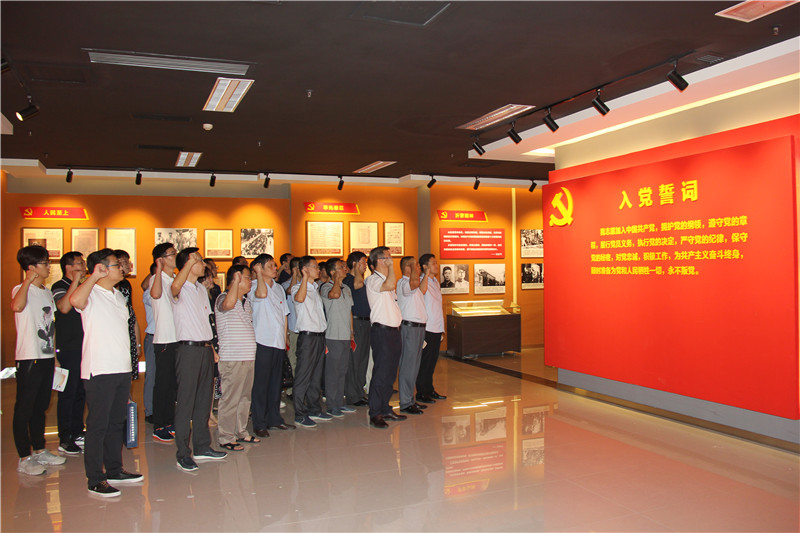 在鮮紅的黨旗前,黨委書記谷卓奇、黨委副書記劉洪亮、副總經(jīng)理李銳帶領大家重溫了入黨誓詞。