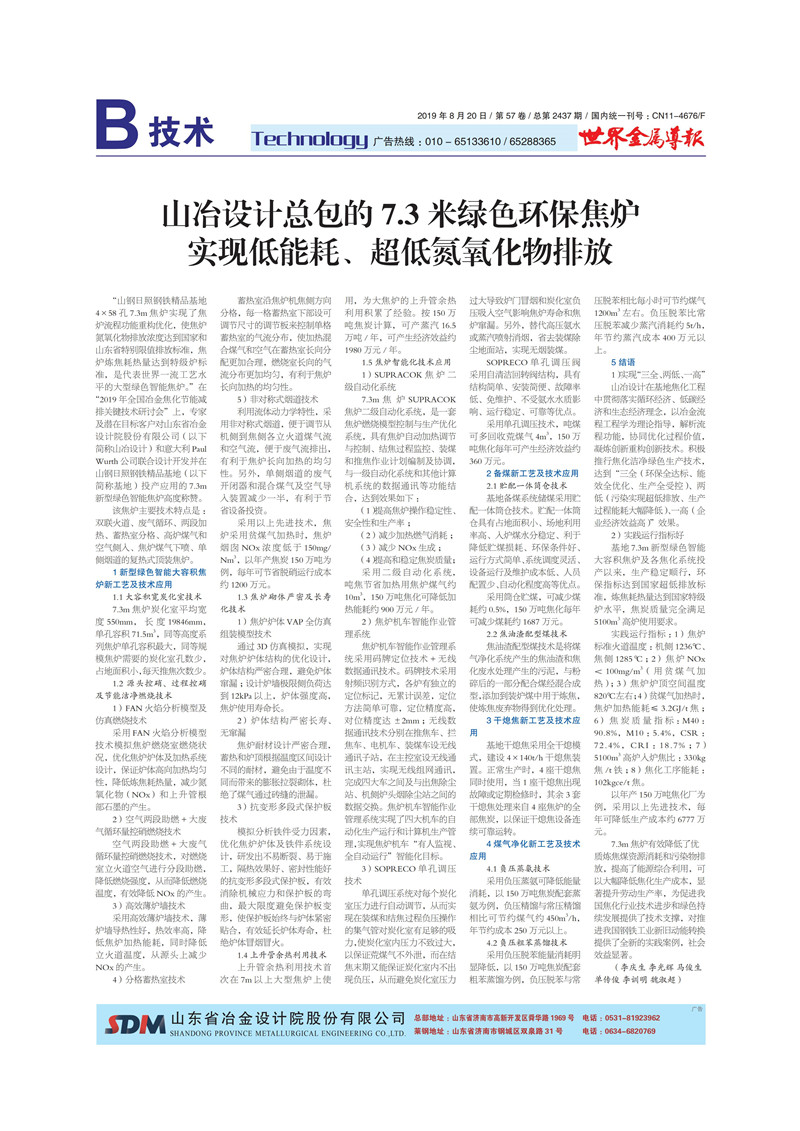 山冶設計總包的7.3米綠色環(huán)保焦爐實現低能耗、超低氮氧化物排放
