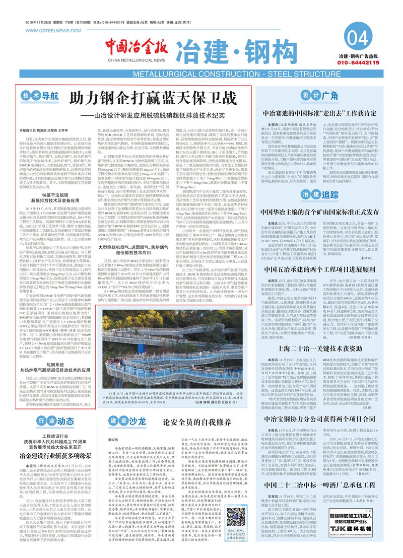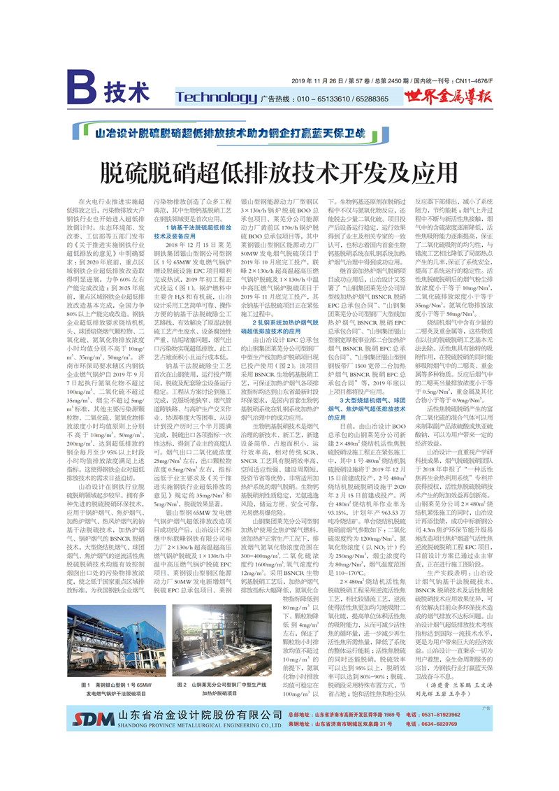 山冶設(shè)計脫硫脫硝超低排放技術(shù)助力鋼企打贏藍天保衛(wèi)戰(zhàn)——脫硫脫硝超低排放技術(shù)開發(fā)及應(yīng)用