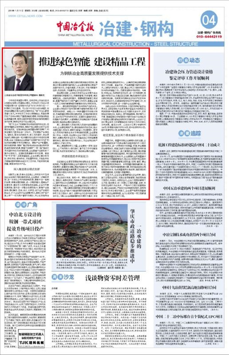 推進綠色智能 建設精品工程——山冶設計為鋼鐵冶金高質(zhì)量發(fā)展提供技術支撐