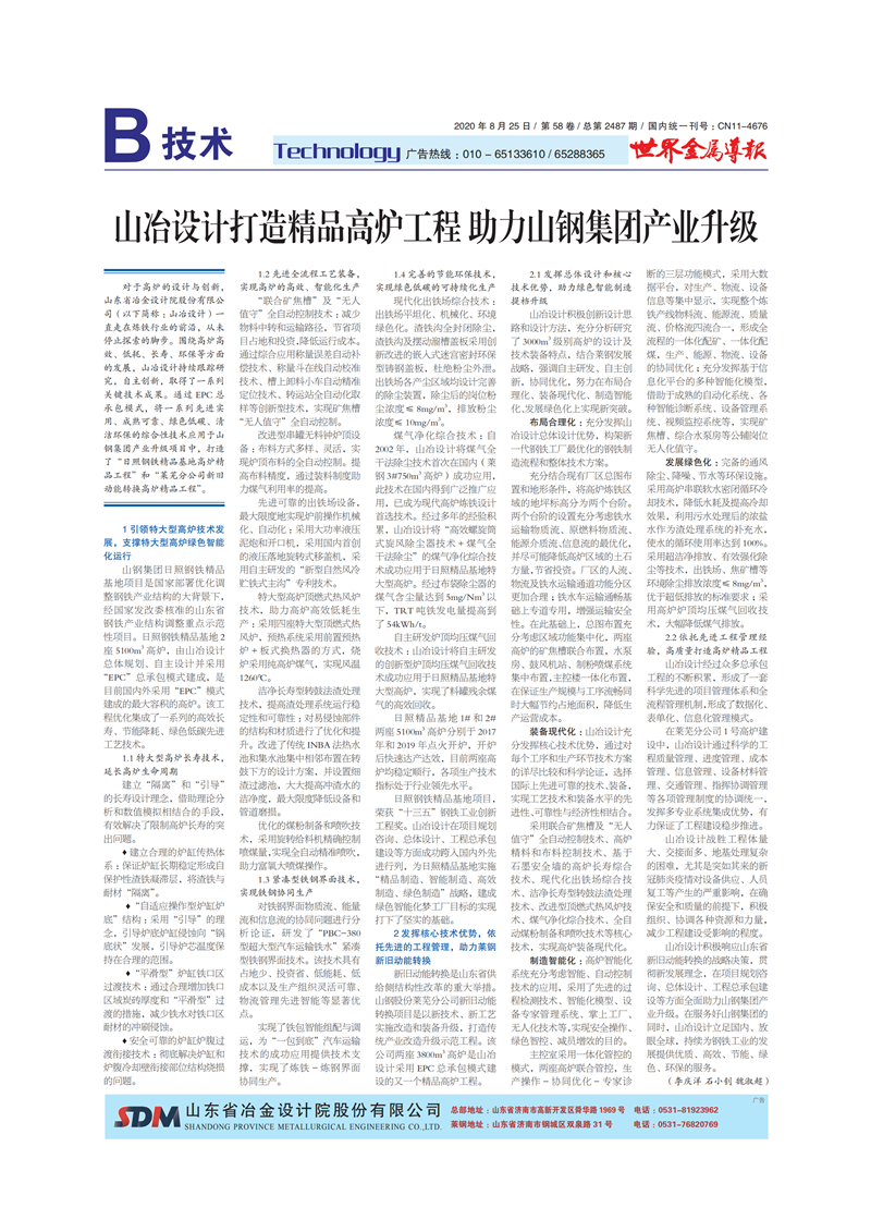 山冶設(shè)計打造精品高爐工程 助力山鋼集團(tuán)產(chǎn)業(yè)升級