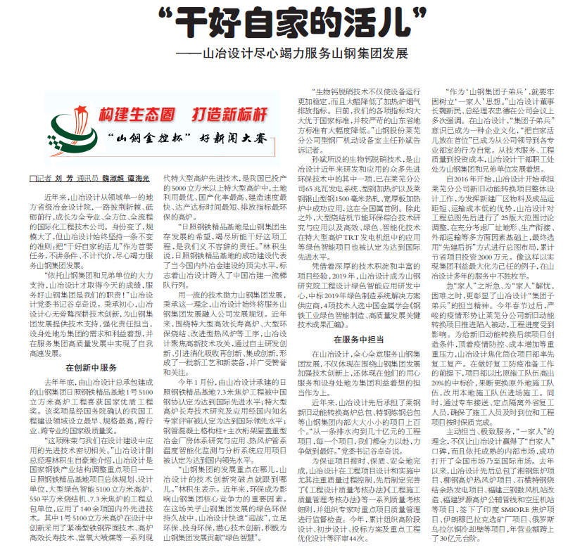 “干好自家的活兒”——山冶設(shè)計(jì)盡心竭力服務(wù)山鋼集團(tuán)發(fā)展