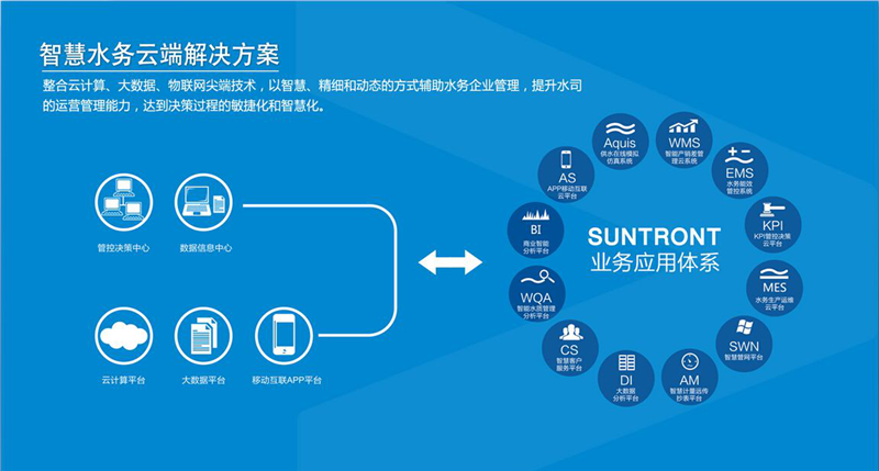 基于物聯(lián)網(wǎng)、云計算的管理平臺為各種水處理運營的安全管理、生產(chǎn)運行、水質(zhì)化驗、設(shè)備管理、日常辦公等提供統(tǒng)一業(yè)務(wù)信息管理平臺,對企業(yè)實時生產(chǎn)數(shù)據(jù)、視頻監(jiān)控數(shù)據(jù)、工藝設(shè)計、日常管理等相關(guān)數(shù)據(jù)進行集中管理、統(tǒng)計分析、數(shù)據(jù)挖掘,為不同層面的生產(chǎn)運行管理者提供即時、豐富的生產(chǎn)運行信息,為輔助分析決策奠定良好的基礎(chǔ),為企業(yè)規(guī)范管理、節(jié)能降耗、減員增效和精細化管理提供強大的技術(shù)支持。